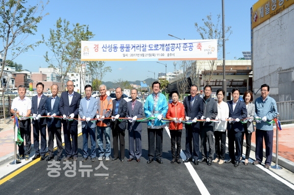산성동 풍물거리길 도로개설공사 준공식 테이프커팅 모습