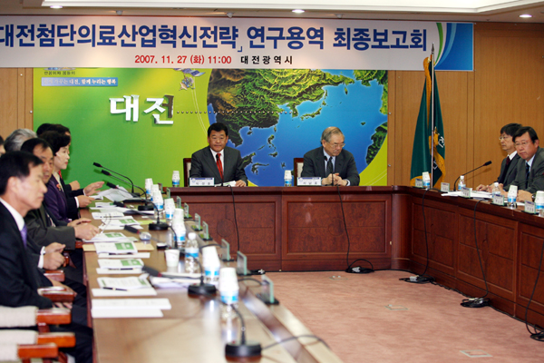 대전시는 이날 시청 중회의실에서 박성효 시장을 비롯한 포럼, 특구본부, 첨단산업진흥재단 등 실무관계자가 참석한 가운데 대전시의 첨단의료산업 허브 가능성을 타진하고 시의 첨단의료산업 발전을 위한 다양한 정책에 대한 평가, 이를 바탕으로 대전시가 추진할 정책에 대한 로드맵 구성에 나선다고 밝혔다.