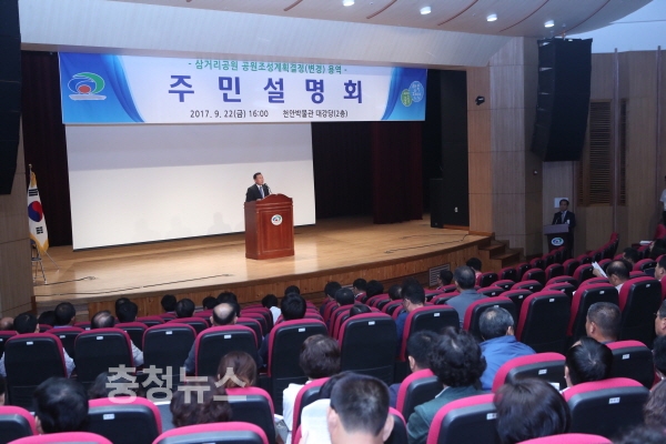 시는 22일 천안박물관에서 주민들의 공감대 형성과 다양한 의견 수렴을 위해 천안삼거리공원 명품화사업 ‘주민설명회’를 개최했다고 밝혔다.