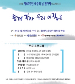 국방부 주최, 충남대 백마사회공헌센터 주관으로 이달 26일 오후 7시, 정심화국제문화회관 백마홀에서 ‘함께 가자 우리 이 길을’이란 타이틀의 ‘제69주년 국군의 날 전야제’ 행사를 개최한다.
