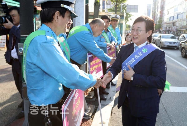 김경훈 대전시의회 의장은 22일 시청 네거리에서 열린 ‘대중교통의 날’캠페인에 참여해 시민들에게 대중교통을 적극적으로 이용해줄 것을 홍보했다.