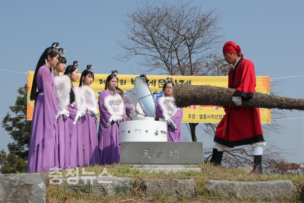 백제문화제 개막 전날인 27일 오전 10시에는 팔충사적선양위원회 주관으로 계백장군의 유허지인 천등산정 채화단에서 백제혼불 채화를 위한 고천제를 지내고, 채화선녀가 거울인 화경을 이용해 채화봉에 점화하고 혼불을 천등산 아래 팔충사로 봉송한다.