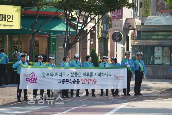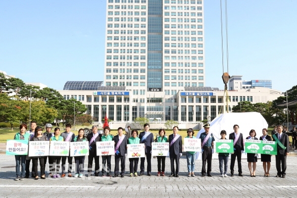 또 이날 오전 8시 40분 시청 남문광장에서는 도로교통공단, 교통안전공단 관계자 및 어린이, 시민이 함께한 가운데 대전소방악대의 팡파르를 시작으로‘세계 차 없는 날’기념 교통환경 퍼포먼스가 펼쳐져 시민들로부터 박수갈채를 받았다.