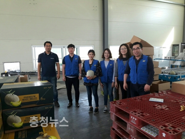 한국농수산식품유통공사 대전세종충남지역본부(aT, 본부장 송기복) 직원들은 22일 충남 논산시 채운면 소재 멜론 업체를 찾아 추석명절 주문물량의 기한 내 출하를 위한 일손돕기를 실시했다.