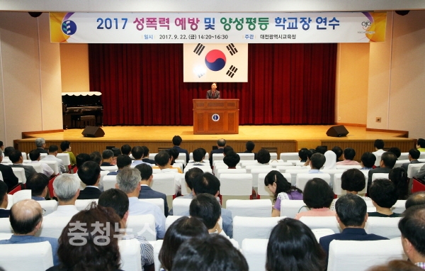 대전광역시교육청(교육감 설동호)은 22일 대전교육과학연구원에서 대전 지역 초ㆍ중․고 학교장 대상으로 성폭력 예방 및 양성평등교육을 실시했다.