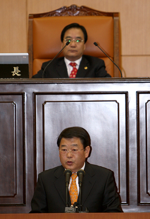 박 시장은 오후 2시 오정섭 의원이 잇단 국책사업 유치 실패가 시장의 정치적 지도력 부족에 있는 것이 아니냐는 질문에 나름대로 가진 인맥과 행정력을 동원해 최선의 노력을 기울였으나 정치논리가 합리성이나 타당성 보다 앞선다는 오 의원의 지적에 공감을 표시했다.