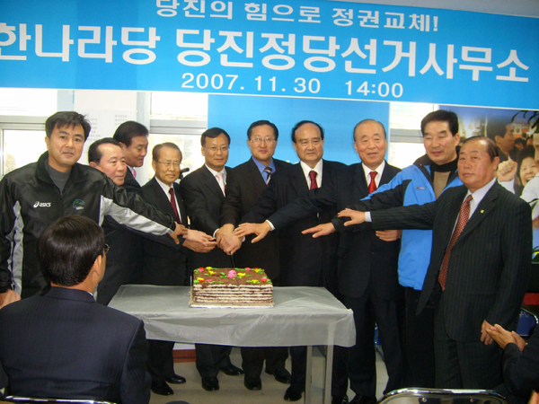 작년 2006년 12월 전임 당협위원장의 궐위이후 10개월만에 새로 임명된 김용기 조직위원장을 주축으로 당진군에서 이명박 한나라당 대통령 후보의 대선 승리를 위한 본격적인 선거운동의 시작이라 할 수 있는 명일의 선거연락소 개소식에는 김용환 상임고문, 유한열 상임고문, 강창희 중앙선대위 부위원장, 김학원 최고위원, 이진구 도당위원장, 김현욱 전 국회의원을 비롯한 300여명의 중앙과 충청권의 주요 당직자들이 참석하여 한나라당 당진군 당원들의 결속과 대선승리의 결의를 다지는 시간이 될 것이다.