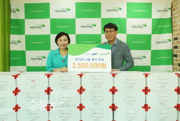 삼성카드 대전지역단(단장 전상훈)은 추석을 맞이하여 25일 초록우산어린이재단 대전종합사회복지관(관장 유미)에 250만원 상당 후원물품을 전달했다.
