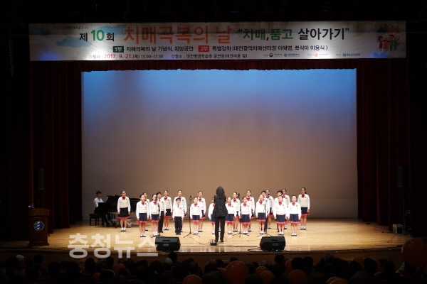 대전시와 대전광역치매센터(센터장 이애영)는 지난 21일 대전평생학습관 공연장에서 9월 21일 치매극복의 날을 맞이해 800여명이 참석한 가운데 제10회 치매극복의 날 기념행사 ‘치매, 품고 살아가기’ 행사를 개최했다.