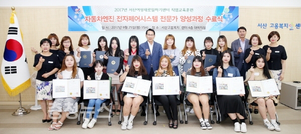 서산시가 운영하는 서산여성새로일하기센터가 지난 25일 고용복지플러스센터에서‘자동차엔진 전자제어시스템 전문가 양성과정’수료식을 가졌다.
