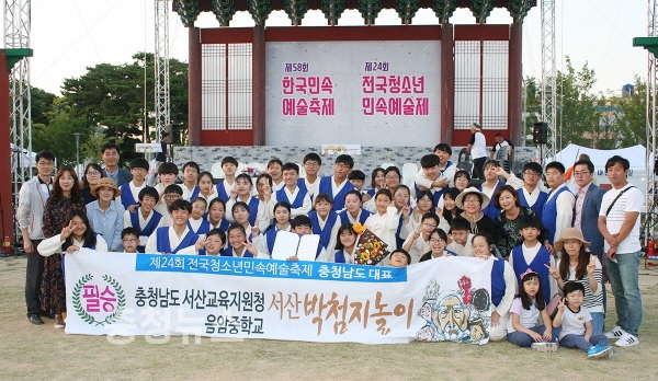 서산시에 따르면 음암중, 음암초, 석림초 학생들로 구성된 박첨지놀이 공연단이 지난 22일 경남 김해 수릉원에서 열린 제24회 전국청소년민속예술제에서 충남 대표로 출전해 문화체육관광부 장관상인 금상을 수상했다.