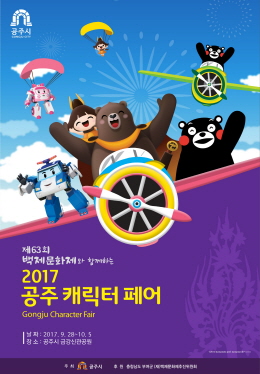 충남 공주시(시장 오시덕)는 오는 28일부터 10월 5일까지 백제문화제가 열리는 금강신관공원 행사장에서 ‘2017 공주 캐릭터 페어’를 개최한다고 밝혔다.