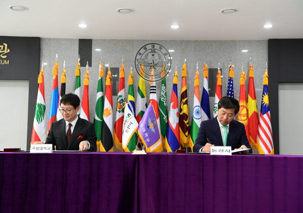 협약은 △지역사회의 발전을 위한 상호 노력 및 협력 증진 △안보체험·연구·학술분야 공동 관심사업 참여 및 협업 △지역 전통문화 홍보·관광·문화 프로그램 참가 및 지원 △시설물·자원의 사용 또는 편의제공 등을 바탕으로 충남도-논산시-국방대 간 상호협력을 위한 다각적인 협력을 목적으로 한다.
