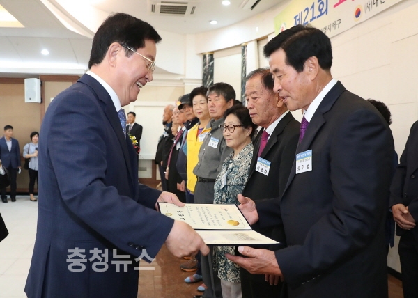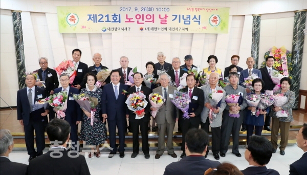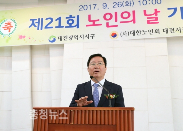 대전 서구(구청장 장종태)는 26일 VIP웨딩홀 컨벤션홀에서 장종태 구청장을 비롯해 지역 어르신 700여 명이 참석한 가운데, 제21회 노인의 날 기념행사를 개최했다.