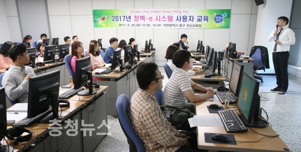 대전 동구(구청장 한현택)는 26일 구청 전산교육장에서 사업부서 담당직원 등 60여 명을 대상으로 청백-e 시스템 사용자 교육을 진행했다.