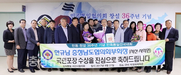 한규남 서산시의원이 민족통일 창설 제36주년을 맞아 ‘2017 민족통일전국대회’에서 국민포장을 수상했다.