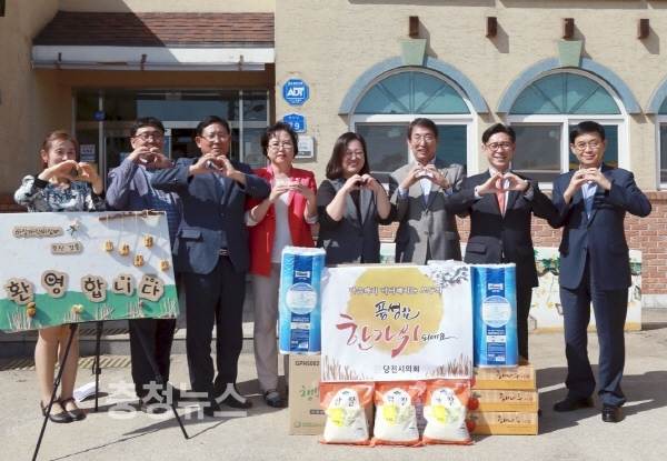 당진시의회(의장 이종윤) 의원 12명은 28일 9월 의원출무일을 마치고 민족의 대명절 추석을 맞이하여 주변에 어렵게 살아가고 있는 이웃들이 따뜻하고 훈훈한 명절을 보낼 수 있도록 하람 어린이집과 한국 장애인부모회 당진지회를 방문해 위문품을 전달하고 위로와 대화의 시간을 가졌다.