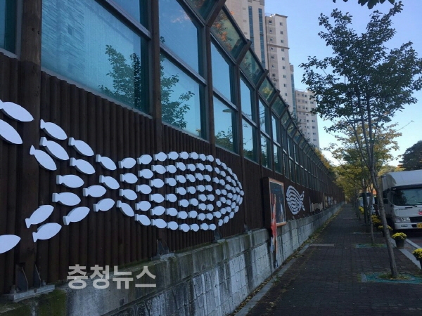 신도심 지역에 속하는 원당동 한라비발디아파트 방음벽 150미터 구간도 지난해 당진3동주민자치위원회의 노력으로 벽화거리로 변신해 지역주민들에게 힐링을 선사하고 있다.