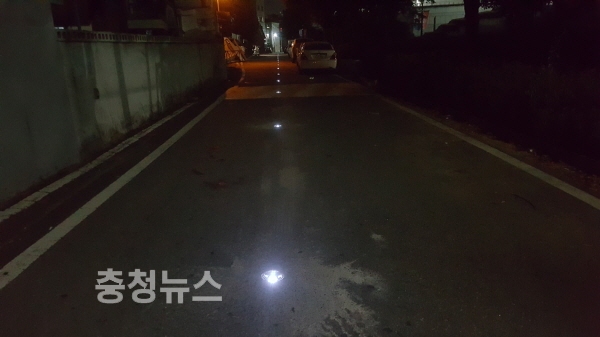 이번에 설치한 표지병은 도로바닥에 고정하는 형식으로 가시거리가 800m이상이며, 보안등보다 쉽게 간격조절이 가능하고 낮시간 저장한 태양광으로 빛을 내기 때문에 경제적·친환경적이다.