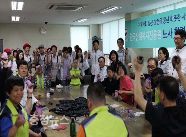 산림청 한국산림복지진흥원은 29일 대전 동구 판암동에 위치한 판암장애인보호작업장(원장 권진욱)을 방문, 장애인들의 일손 돕기 및 산림치유프로그램 진행 등 노사 공동 사회공헌활동(CSR)을 벌였다고 밝혔다.
