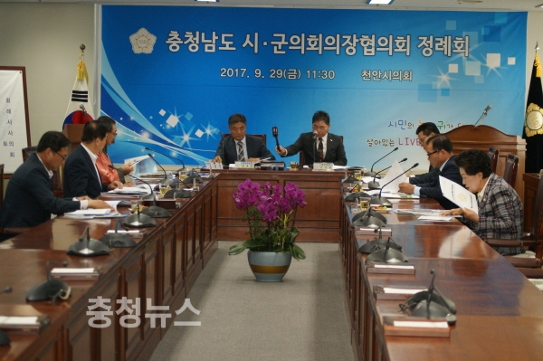 충남시군의장협의회(회장 이기성, 청양군의회의장)가 29일 15개 시군의회 의장이 참석한 가운데 천안시의회에서 개최됐다.