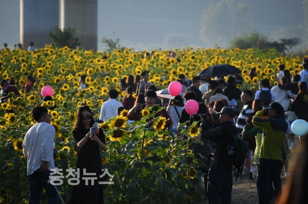 또한, 해바라기와 코스모스가 만발한 미르섬에는 연인, 친구, 가족 단위의 관광객이 저마다의 포즈로 사진을 찍으며 즐거운 시간을 보냈다.