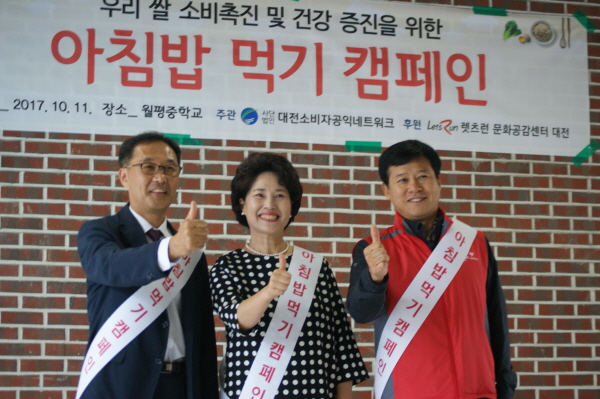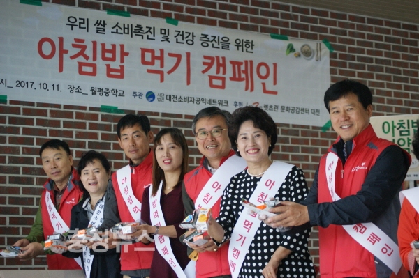 대전소비자공익네트워크(회장 도정자)는 렛츠런 문화공감센터 대전 남부권역본부(본부장 최원일)의 후원으로 11일 ‘아침밥 먹기 캠페인’ 나눔 행사를 가졌다.