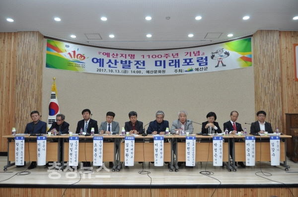 충남 예산군이 예산지명 1100주년을 맞이해 미래 예산의 나아갈 방향을 찾는 예산발전 미래포럼을 13일 개최했다.