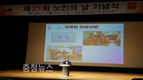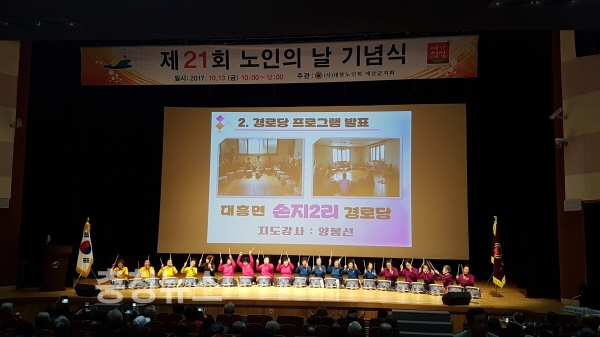 충남 예산군은 13일 문예회관에서 대인노인회 예산군지회(지회장 박상목) 주관으로 ‘제21회 노인의 날 기념행사’를 개최했다고 밝혔다.