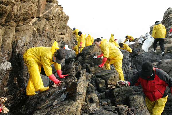 17일에는 가기산 서구청장도 태안 앞바다를 직접 찾아 기름띠 제거에 동참했으며, 태안군청을 방문해 직원들이 정성으로 모은 성금 438만원도 함께 전달했다.