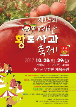 충남 예산지역의 사과를 널리 알리기 위한 제15회 예산황토사과축제가 오는 28일부터 29일까지 2일간 예산군 무한천 체육공원 일대에서 개최된다.