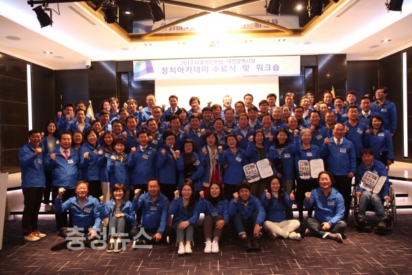 한편, 이번 워크숍 및 수료식에는 박범계 시당위원장, 강래구 동구지역위원장, 송행수 중구지역위원장, 박용갑 중구청장, 장종태 서구청장과 아카데미 수강생 80여 명이 참석하였다.