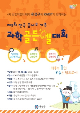 한편, 유성구가 꿈나무과학멘토의 전국브랜드화를 위해 추진하고 있는 과학골든벨 대회는 올해 5회째로 ‘과학’을 매개로 가족애를 도모하는 동시 전국학생들이 과학 실력을 겨룸으로써 미래의 과학인재 양성의 계기 역할을 하고 있다.