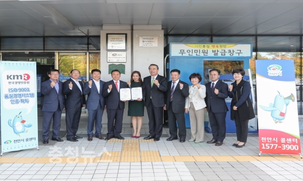충남 천안시는 시민의 가까운 곳에서 전화민원 안내 서비스를 제공하며 시의 친절 이미지를 높여온 ‘천안시콜센터’가 ‘ISO 9001:2015 품질경영시스템 인증’을 취득했다고 16일 밝혔다.