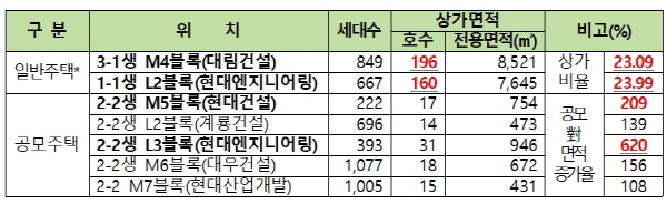 공모주택 상가면적 공모안 보다 최대 6배 증가