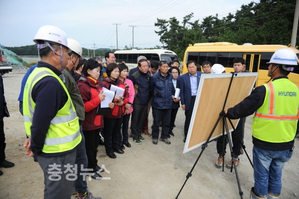 16일에는 도로교통과에서 추진 중인 보령~태안 국도 77호 확포장(연육교 및 해저터널) 현장을 시작으로 원산도 해양낚시터 운영, 원산2리 공동작업장 설치사업, 원산3리 호안도로 정비사업, 축사시설 현대화(ICT 융복합) 사업 현장을 차례로 찾았다.