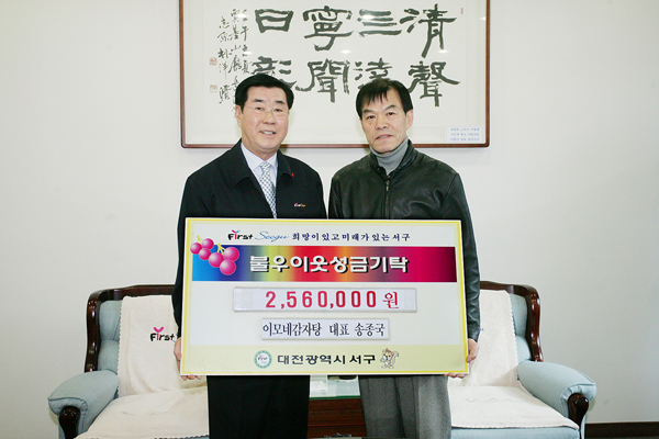 대전광역시 서구(청장 가기산)에는 연말연시를 어려운 이웃과 함께  훈훈하게 보내고자 하는 마음이 따뜻한 성금기탁자들이 연일 구청을 방문하고 있다.