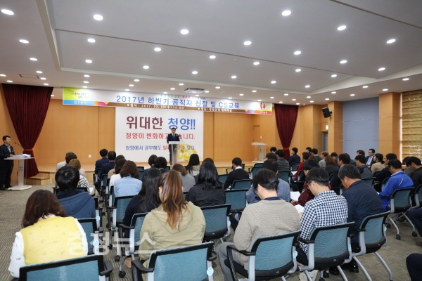 충남 청양군(군수 이석화)은 18일 군청 대회의실에서 공직자 100여명을 대상으로 2017년 하반기 친절교육을 실시했다.