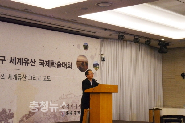 백제역사유적지구 세계유산 국제학술대회 이용우 군수 인사말 모습