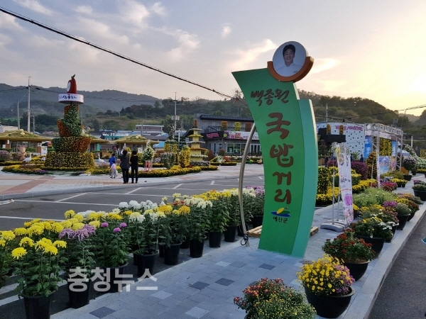 29일까지 진행되는 축제는 국화전시, 국화차 시음회, 국화염색체험, 국화심기 등의 행사가 준비되며 국화로 제작된 꽃탑, 일주문, 황새, 하트포토존 등은 축제장을 국화꽃 향기로 가득 채웠다.