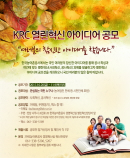 한국농어촌공사(사장 정승)는 오는 11월 9일까지 열린혁신 과제 발굴을 위한 아이디어 공모전을 개최한다.