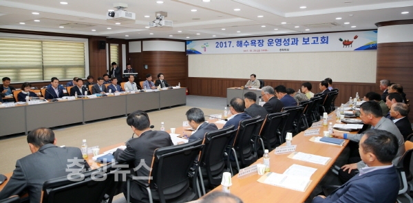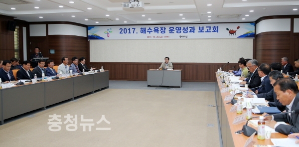 충남 태안군이 20일 군청 중회의실에서 관련 부서장과 해경 등 유관기관 및 번영회 관계자, 관련 전문가 등 48명이 참석한 가운데 한상기 군수 주재로 ‘2017 해수욕장 운영성과 보고회’를 열고 지난 피서철 군에서 운영된 해수욕장의 운영 성과와 부서별 점검사항 및 보완점을 논의했다.