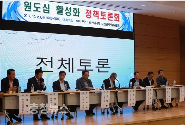 천안시의회(의장 전종한)는 20일 천안시청 대회의실에서 천안시개발위원회(회장 맹성재)와 공동으로 「원도심 활성화 정책 토론회」를 개최했다.