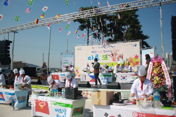 행사는 오전 10시부터 ‘아이로 보는 다문화 세상’이라는 주제로 어린이 그림그리기 대회 ▲다문화와 비다문화 가정 2인 1조의 명절음식 경진대회 ▲다문화 인형극, 나라별 의상 및 놀이 전시, 다문화 놀이 체험 및 푸드 등 다문화 체험 마당 ▲필리핀 전통 춤, 일본밴드 등 동아리 공연과 결혼이민자 장기자랑 등 다채로운 프로그램으로 열렸다.