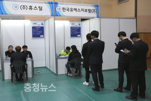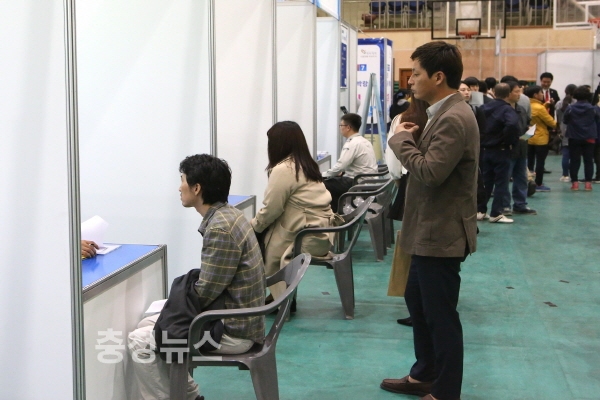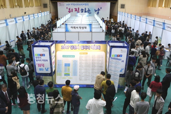 지난 20일 충남 당진시 호서고등학교 체육관에서 열린 일자리 박람회에서 104명의 구직자들이 현장 면접을 통과해 새로운 일자리를 찾았다.