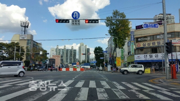 홍도육교 철거 3개월, 공사 순조롭게 진행돼 교통이 원활하게 소통되는 모습