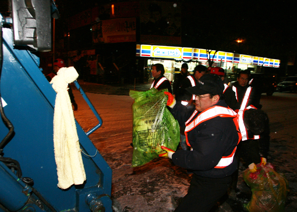 ▲ 박성효시장 새해아침을 대전시 환경 미화원과 함께 청소..