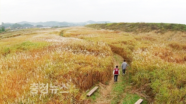 백제교까지 이어진 메밀밭을 지나 부여대교를 지나면 또 다른 은빛세상을 만난다. 약 63만평에 달하는 군수지구 물억새 단지다.