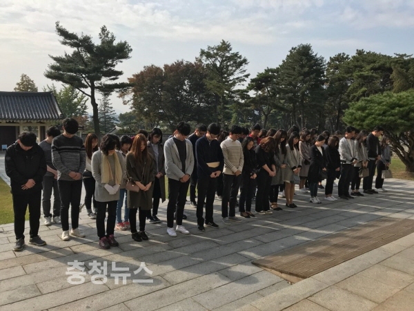 24일 충의사에서 예산군 신규공무원들이 참배를 하고 있다