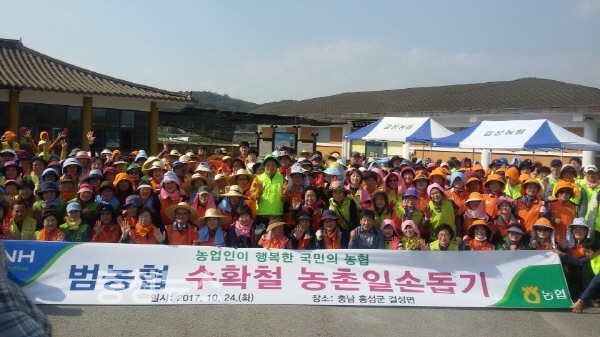 농협중앙회(회장 김병원)는 가을철 수확기를 맞이해 일손부족으로 어려움을 겪고 있는 농업인을 지원하기 위해 24일 충남 홍성군 결성면 일대에서 ‘범 농협 수확철 농촌일손돕기’를 대대적으로 실시했다.